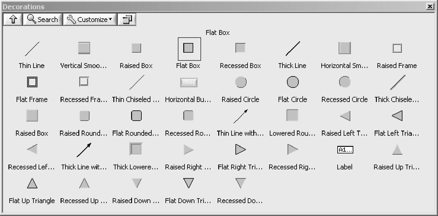 图2-10 LabVIEW提供的基本装饰控件