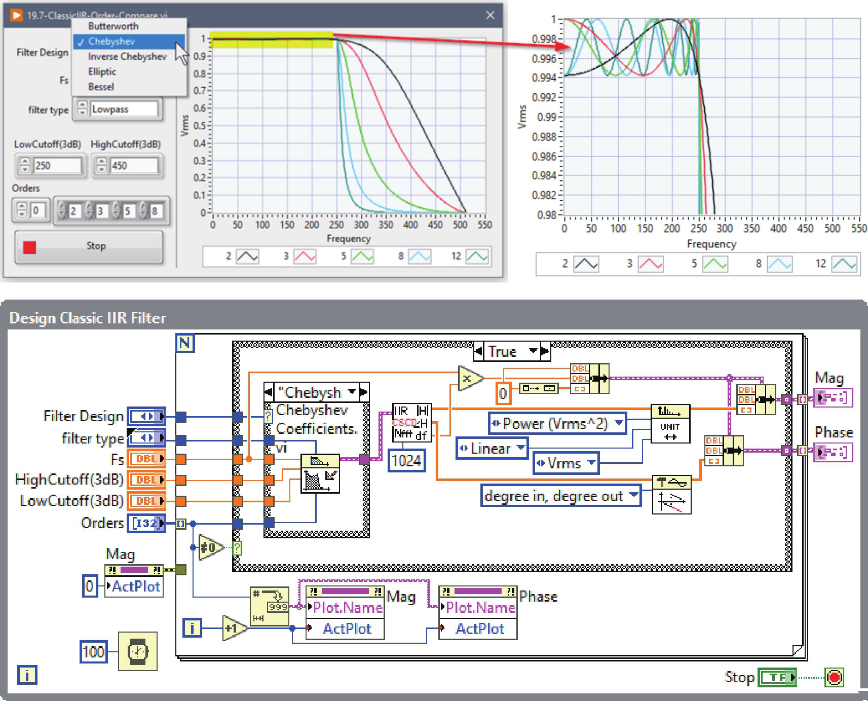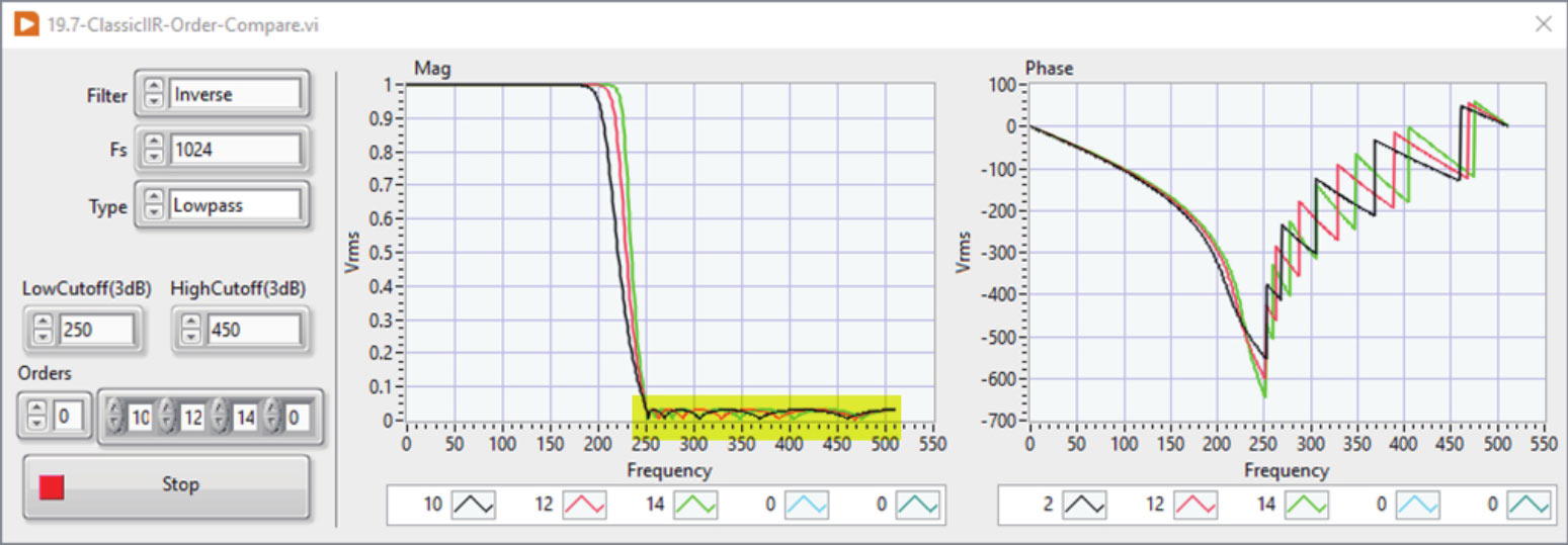 图19-45 不同阶数切比雪夫Ⅱ型低通滤波器对比