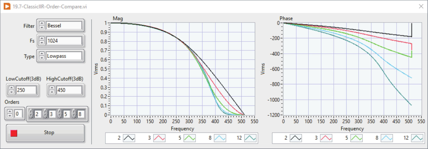 图19-48 不同阶数低通贝塞尔滤波器对比