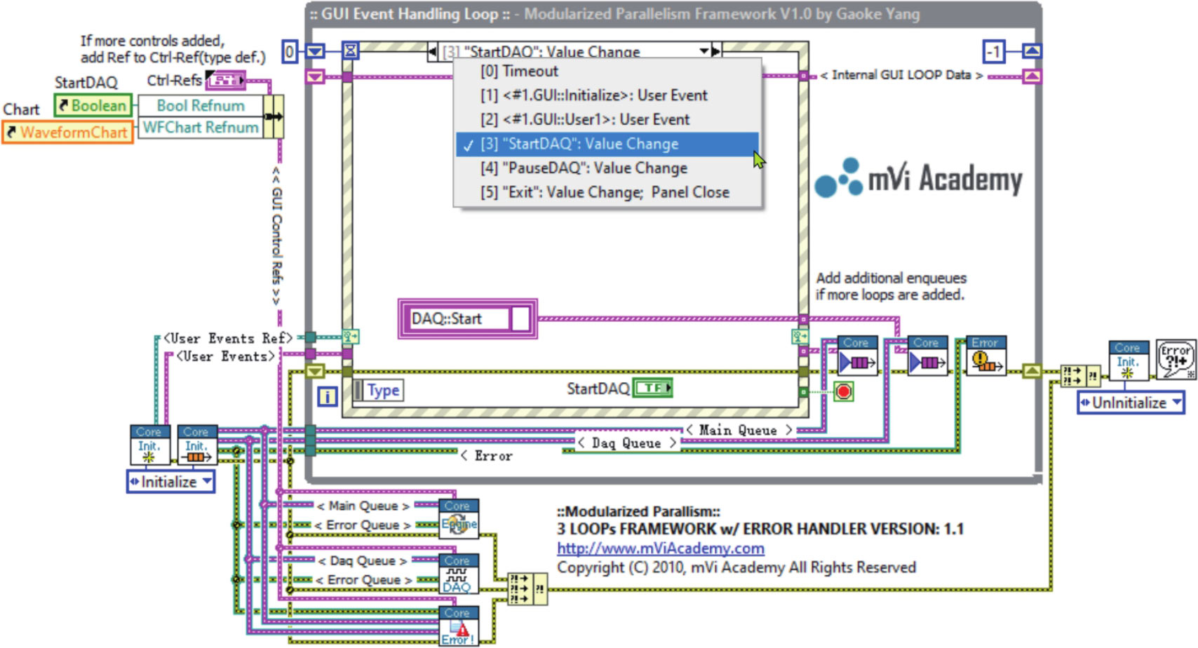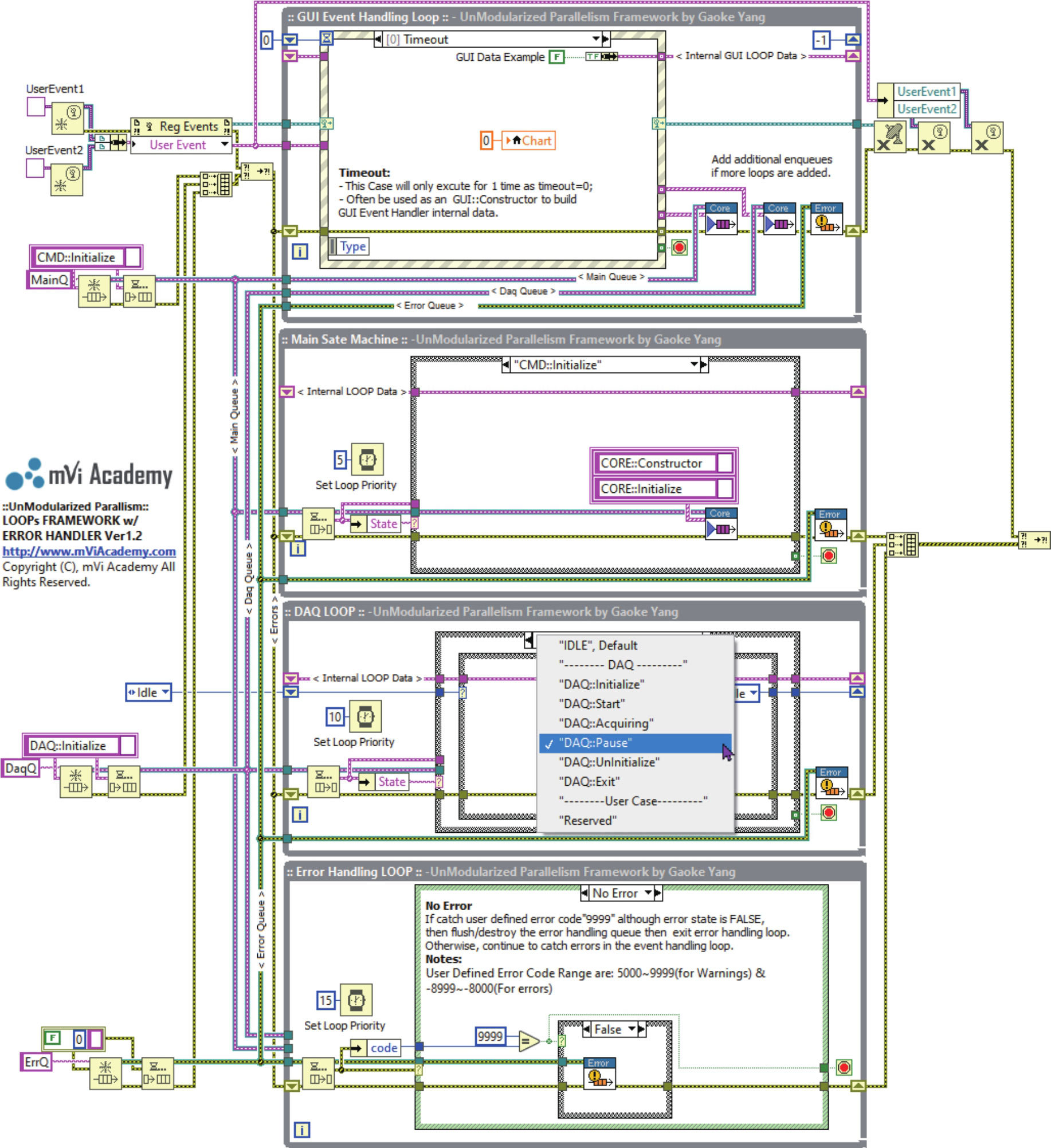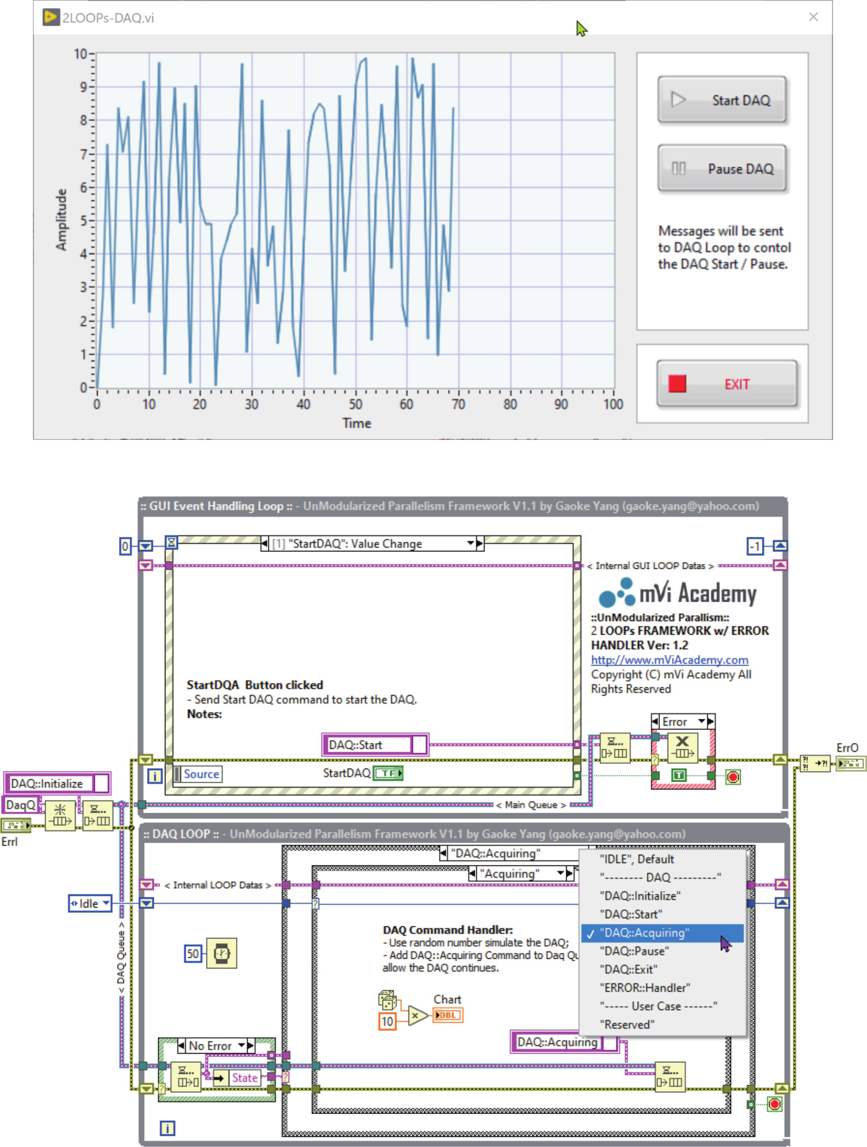 图9-25 具有独立可控数据采集循环的并行程序框架前后面板