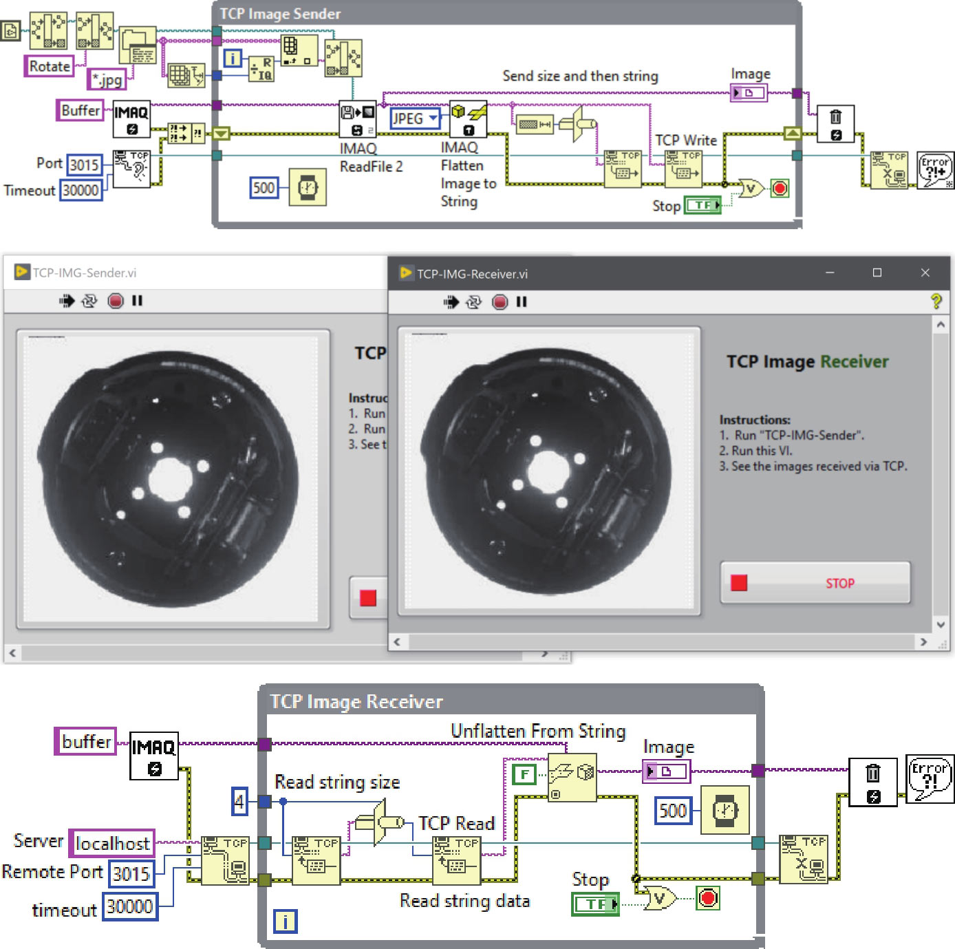 图16-30 使用TCP协议传输图像的程序及运行时的前面板