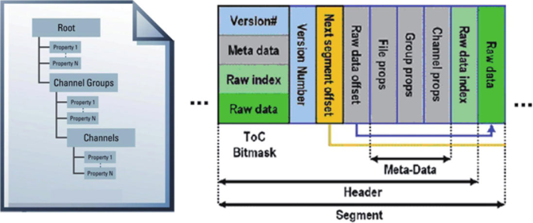 图14-20 TDMS文件的逻辑结构和物理文件中数据段的构成