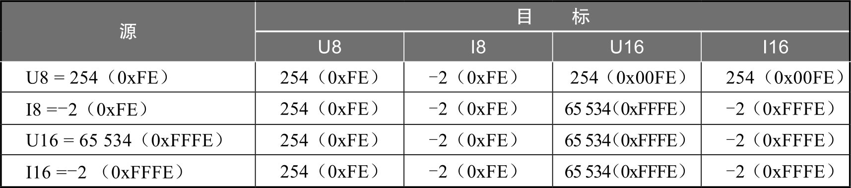 表3-3 以U8/I8/U16/I16格式显示的-2值