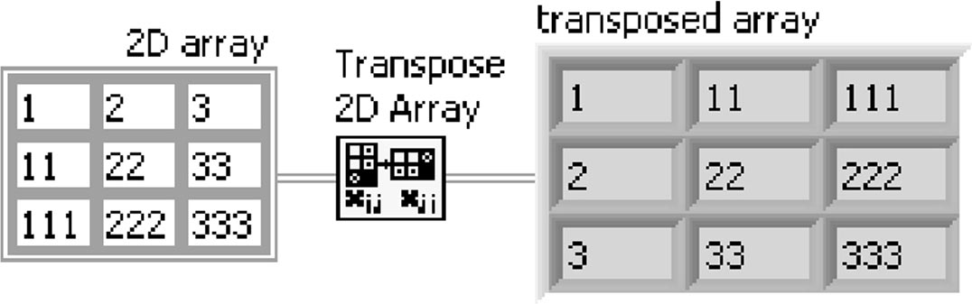 LabVIEW还提供二维数组的转置函数(Transpose 2D Array)