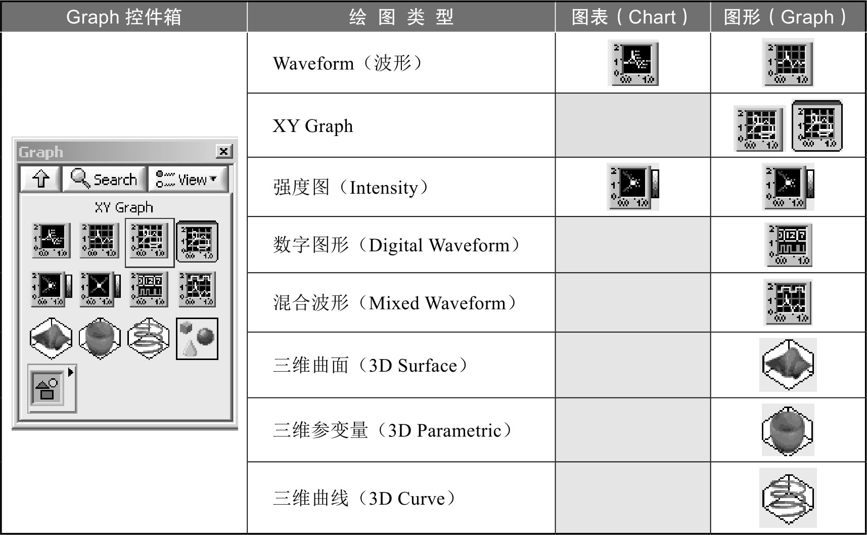 图形(Graph)和图表(Chart)是LabVIEW用于图形显示的控件。考虑到以下几点原因,在本章对它们进行简要介绍: