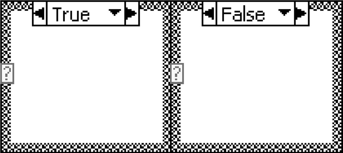 的输入值来选择执行相应的分支,它可位于左边框的任意位置,并可以接受整数、布尔值、字符串和枚举型值。如果分支选择器接线端的数据类型是布尔值,则该结构包括真和假两个分支(图4-10);如果是一个整数、字符串或枚举型值,则该结构可以包括任意多个分支。