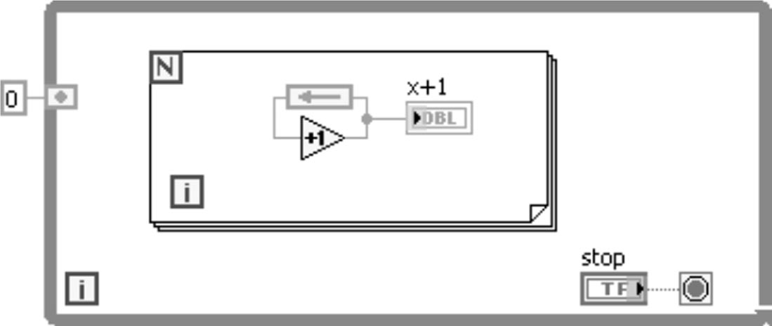 ● 如果反馈节点已经设置了初始值,反馈节点将在VI的第一次执行中初始化为该值。