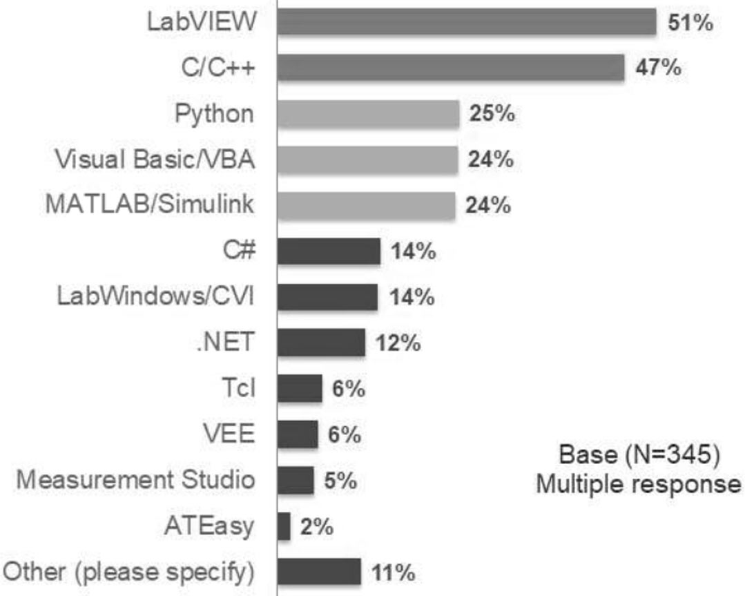 图1-2 测试、测量和仪器控制领域常用软件的统计结果