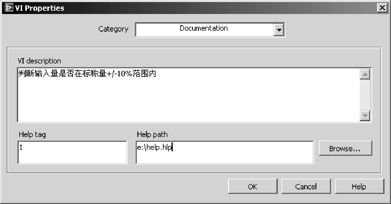 最后,也是最为重要的一步,就是为VI添加文档说明。很多开发人员在项目之初并不重视文档编写,往往在项目完成后才从头为开发的VI或subVI添加说明,优秀的开发人员应避免这种陋习。试想一下,若开发一个大型、复杂、工期较长的项目,等到项目交付时,可能根本记不起来为什么要这样设计VI。另外一种可能就是项目工期非常紧张,到最后迫于客户的压力,可能根本没时间为之前设计的VI创建说明,就要将设计交付给客户。当客户验收时发现缺少VI文档,可能会拒绝付款。最糟糕的情况是若干年后接到客户升级系统的订单时,由于缺少文档,可能连开发人员自己都已经读不懂程序了。因此,从整个项目生命周期(包含后期升级和维护)来看,养成从一开始就为VI添加说明文档的好习惯,总体上反而能有效缩短项目的开发和升级维护工期。另外,若一开始就为每个VI添加说明文档,可利用LabVIEW的文档生成工具,自动生成整个项目的说明文档及帮助文档。