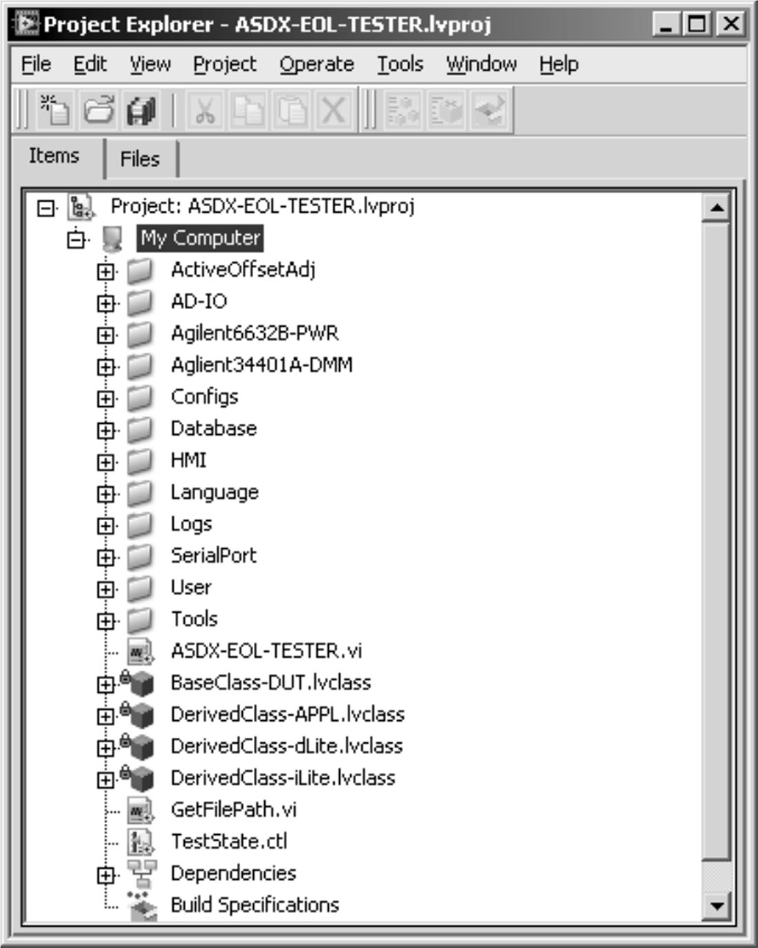 LabVIEW自身也在配制管理和版本控制方面下了不少功夫。例如,从LabVIEW 8.0开始引入工程资源管理器(Project Explorer,如图1-22所示)来有效组织、管理整个项目开发过程中的各种文件。LabVIEW广泛支持多种版本控制工具,无论是大型的Rational Clearcase还是开源跨平台的CVS (Concurrent Versions System)都有较好的支持。同时,对于每个VI,还提供VI版本号自动更新功能。近年来,Git作为新一代的版本控制工具受到开发者的欢迎,通过配制,也能基于Git来实现对LabVIEW程序的版本控制。总之,通过使用各种项目阶段的支持工具包,可以较好地保证高质量的项目交付。