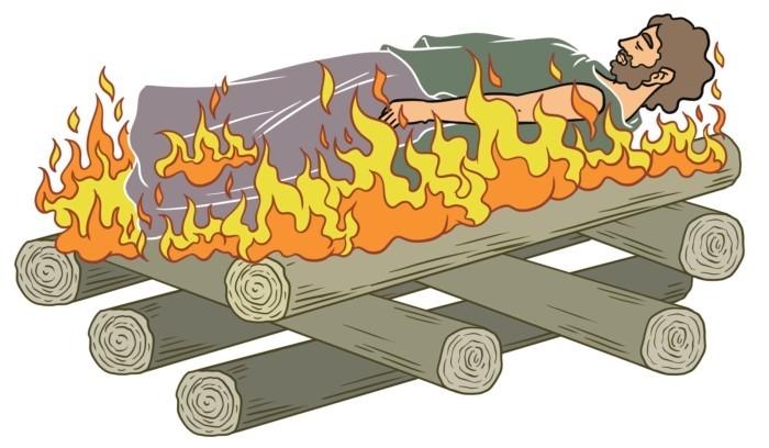 特洛伊 人花了整整九天时间,从 伊达山 上砍伐了最古老的松树并劈成柴火,在王宫门前的空地上架成一堆。