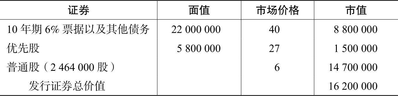 表18-1 1932年4月菲斯克橡胶公司证券的市值