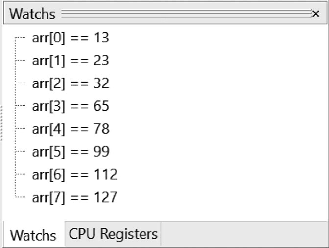 (7)重复步骤(5)和(6),再添加7个变量,即arr[1]、arr[2]、arr[3]、arr[4]、arr[5]、arr[6]、arr[7]。