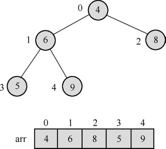 类似地,对于图1.84(b)中的最小堆来说,用数组arr表示为