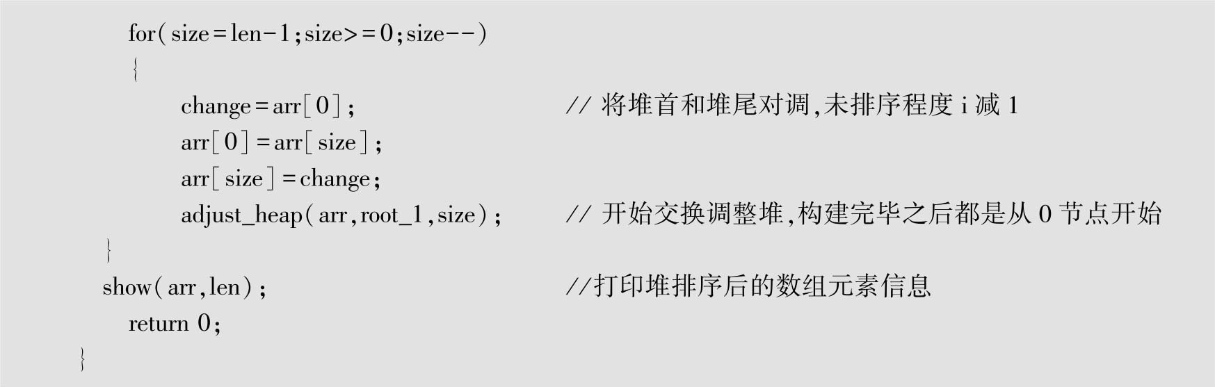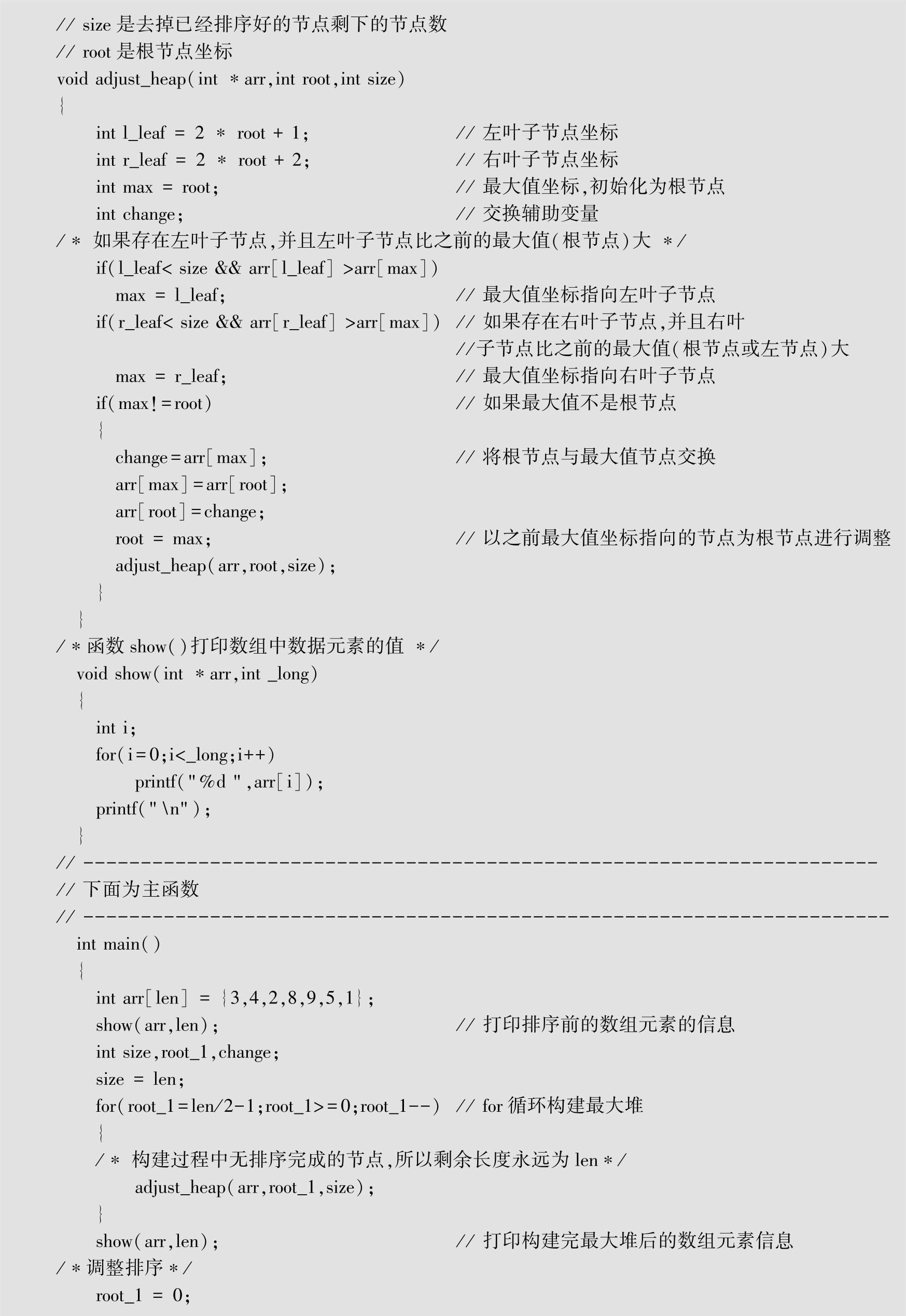 实现堆排序算法的C语言代码如代码清单1-14所示。