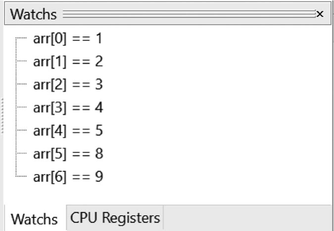 (6)在“Add Variable Watch”对话框中的文本框中输入“arr[0]”,单击“OK”按钮,退出该对话框。