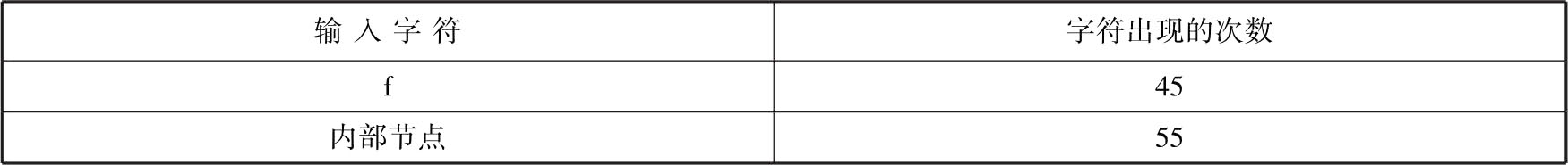 表2.2 输入字符及字符出现的次数(1)