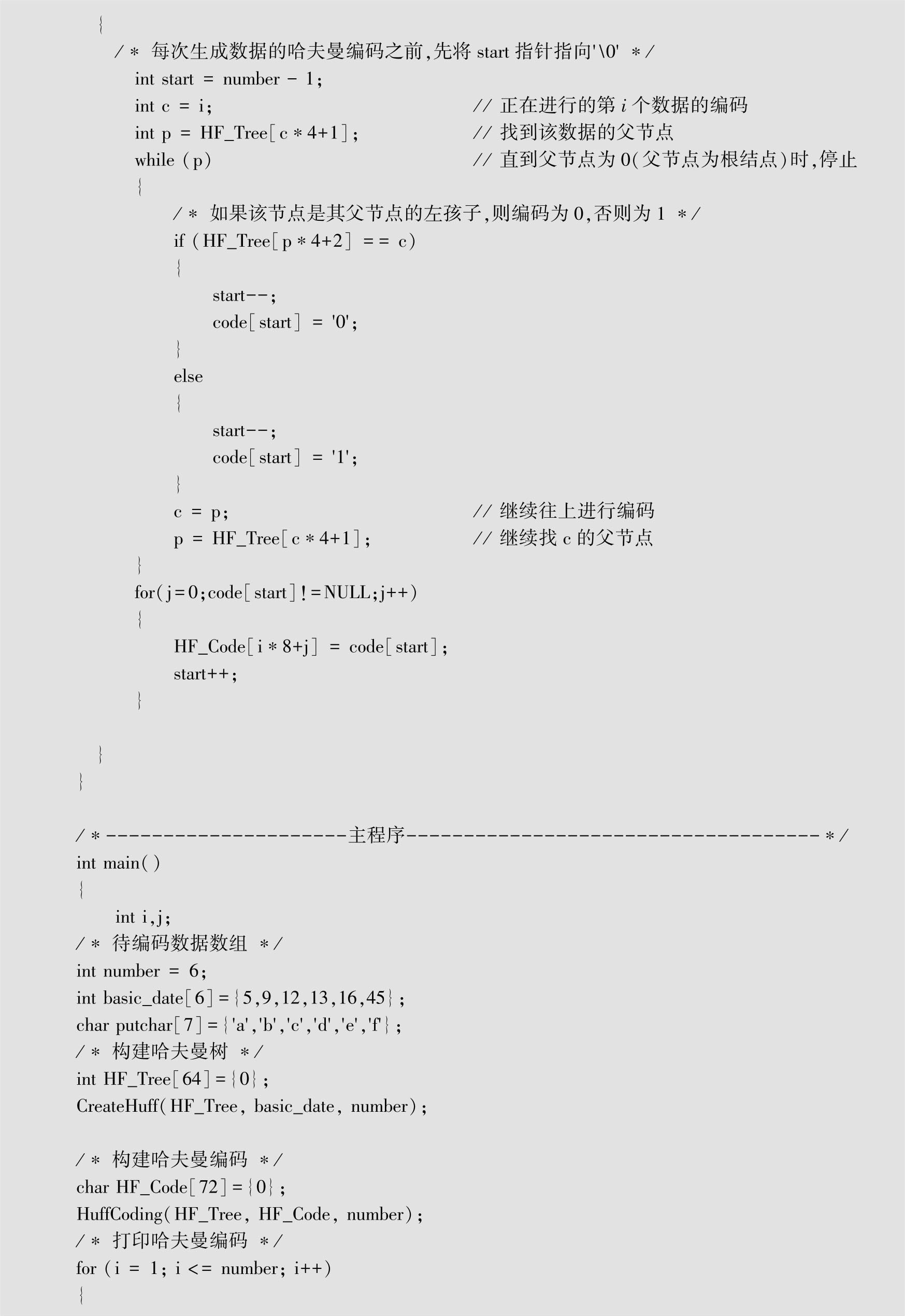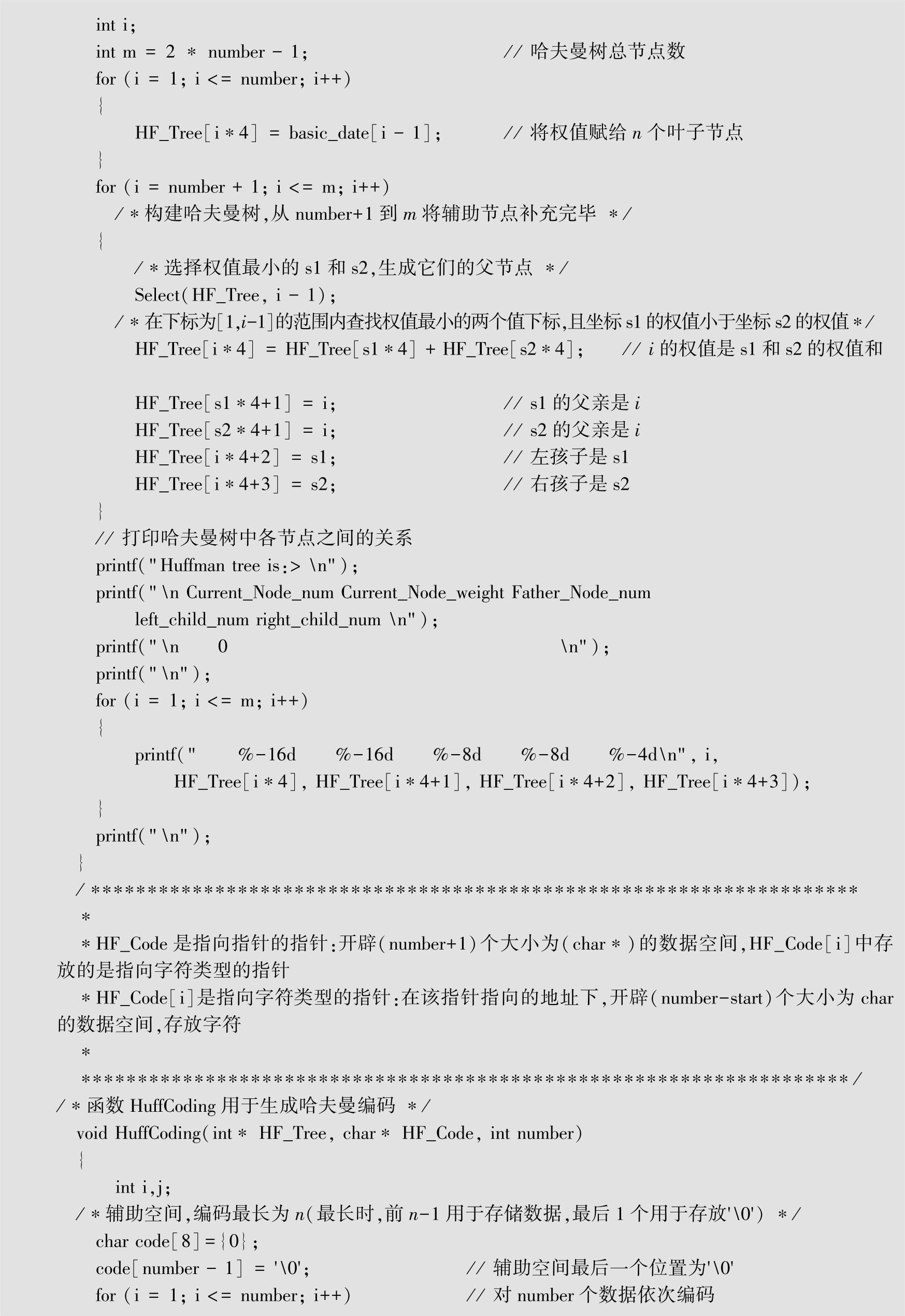 代码清单2-4 实现哈夫曼编码算法的C语言代码