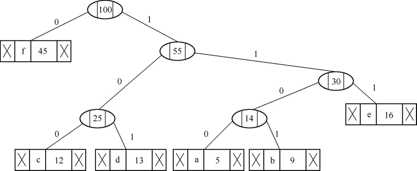 图2.16 由哈夫曼树得到哈夫曼编码