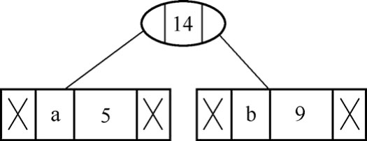 (2)从表2.2给出的最小堆中提取两个出现次数最少的节点。添加一个出现次数为5+9=14的新内部节点,如图2.11 所示。