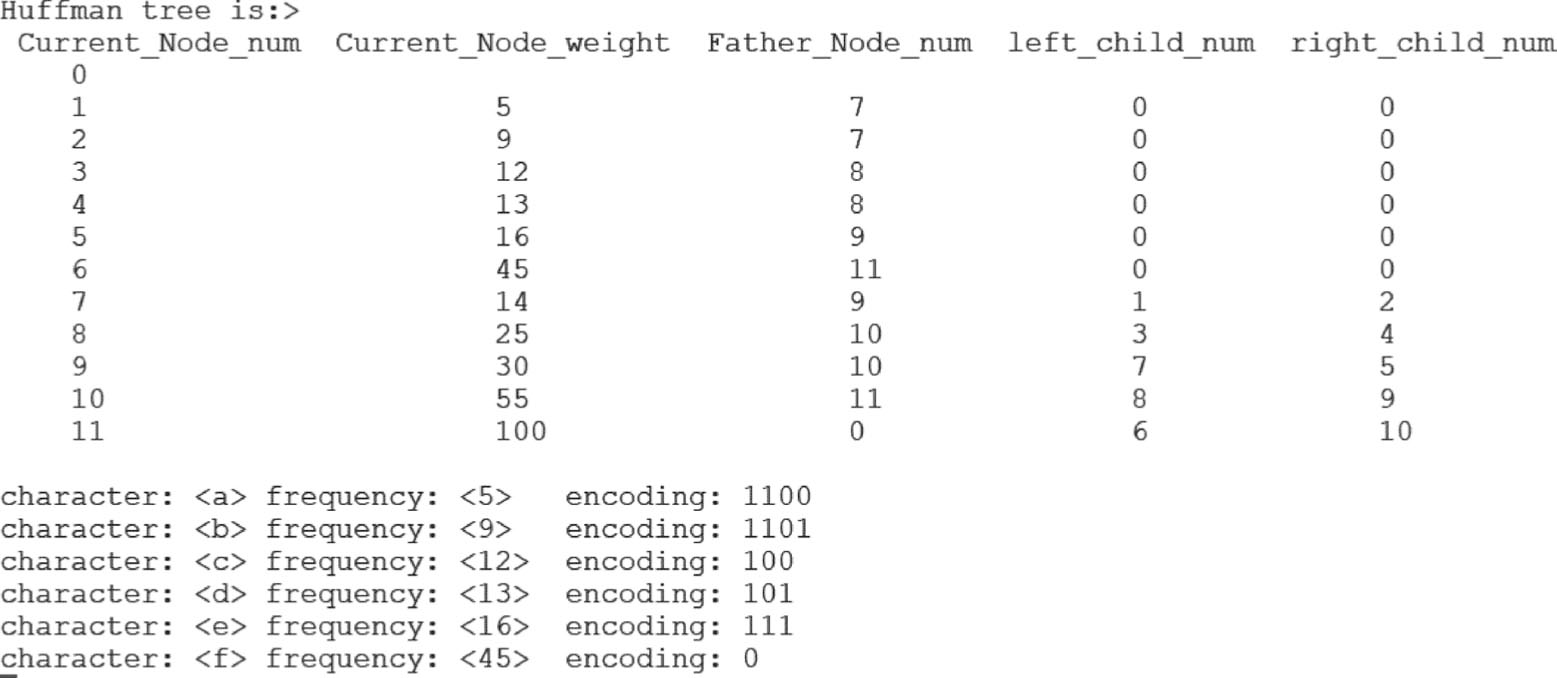 (6)单击“Fetch”按钮,即可在图2.19中看到生成的哈夫曼编码。