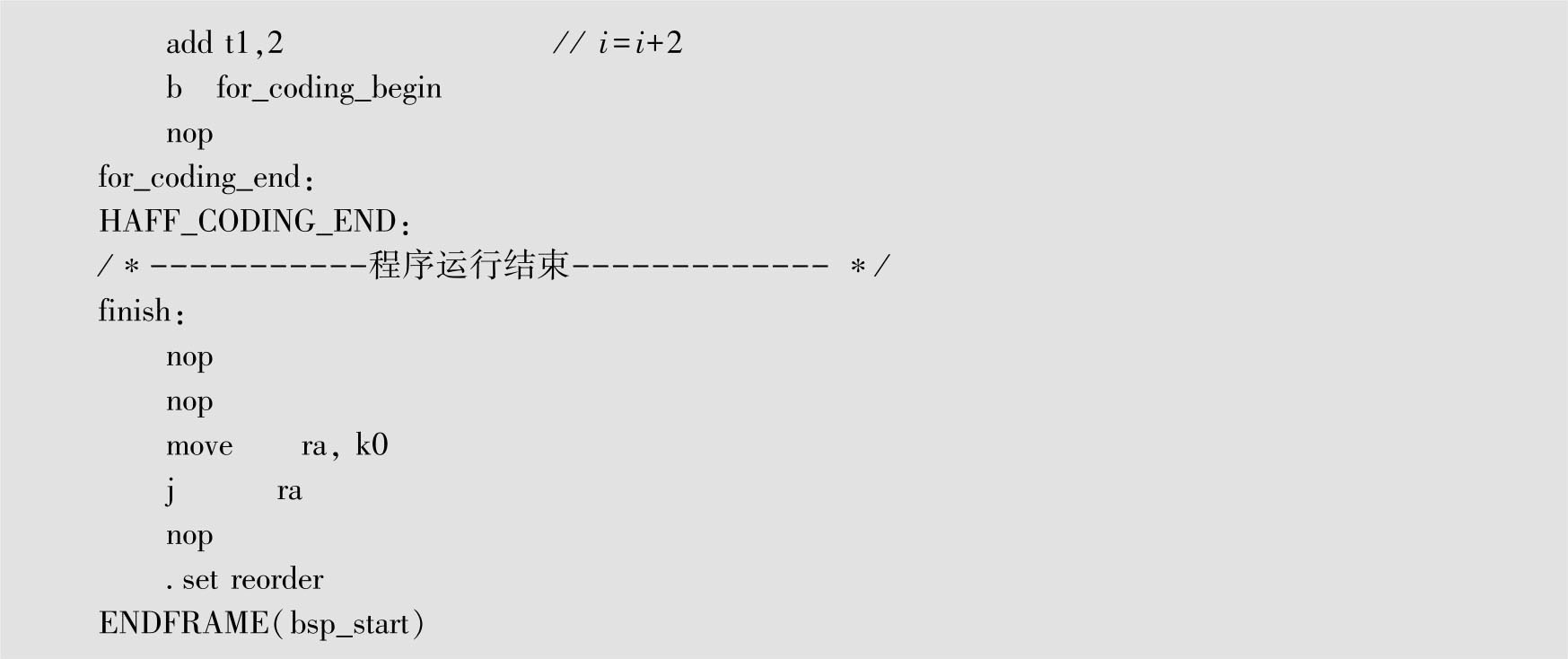在bsp_start.S文件中,添加如代码清单2-5所示的实现哈夫曼编码算法的汇编语言代码。