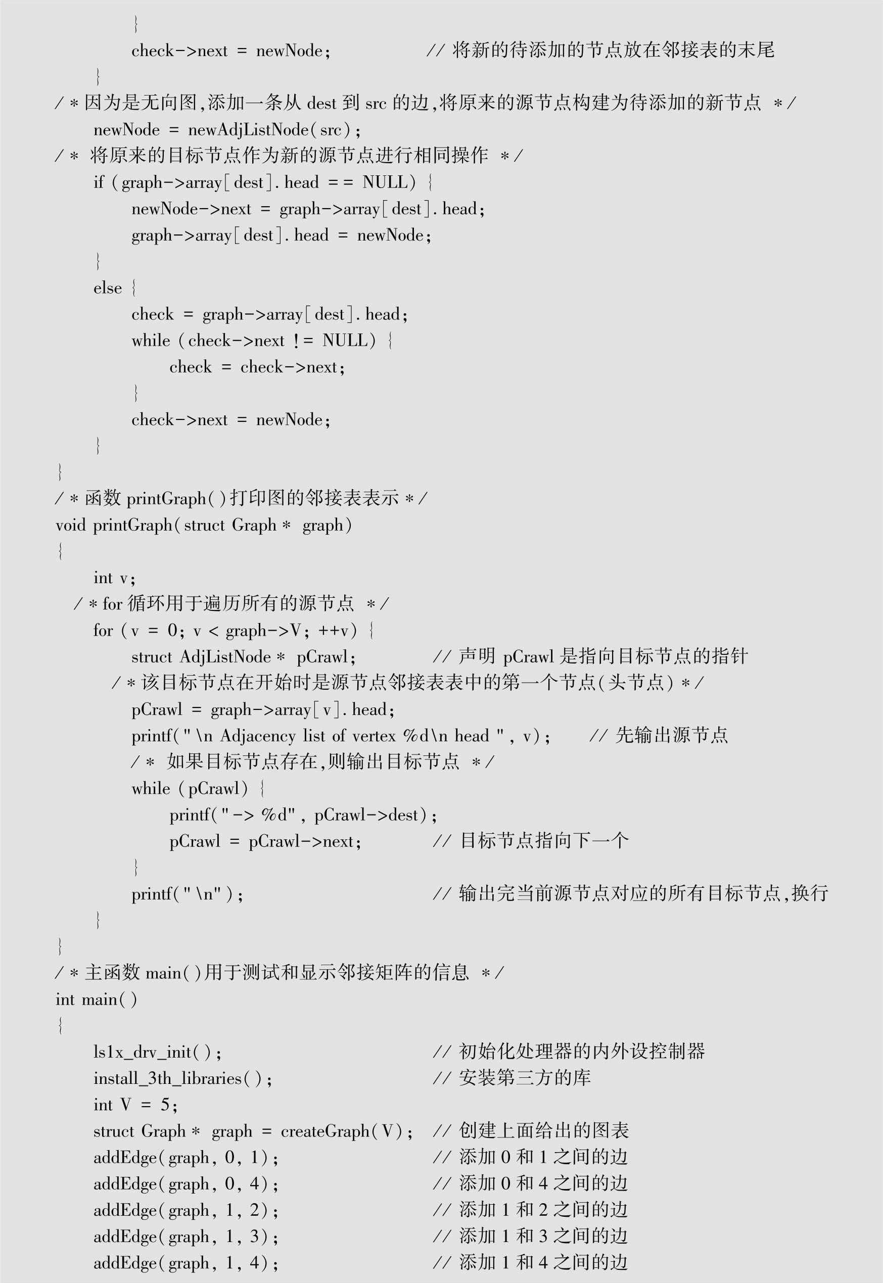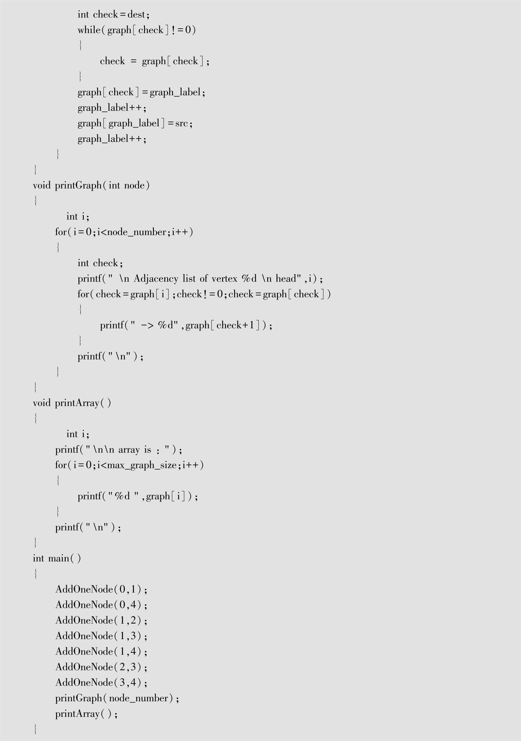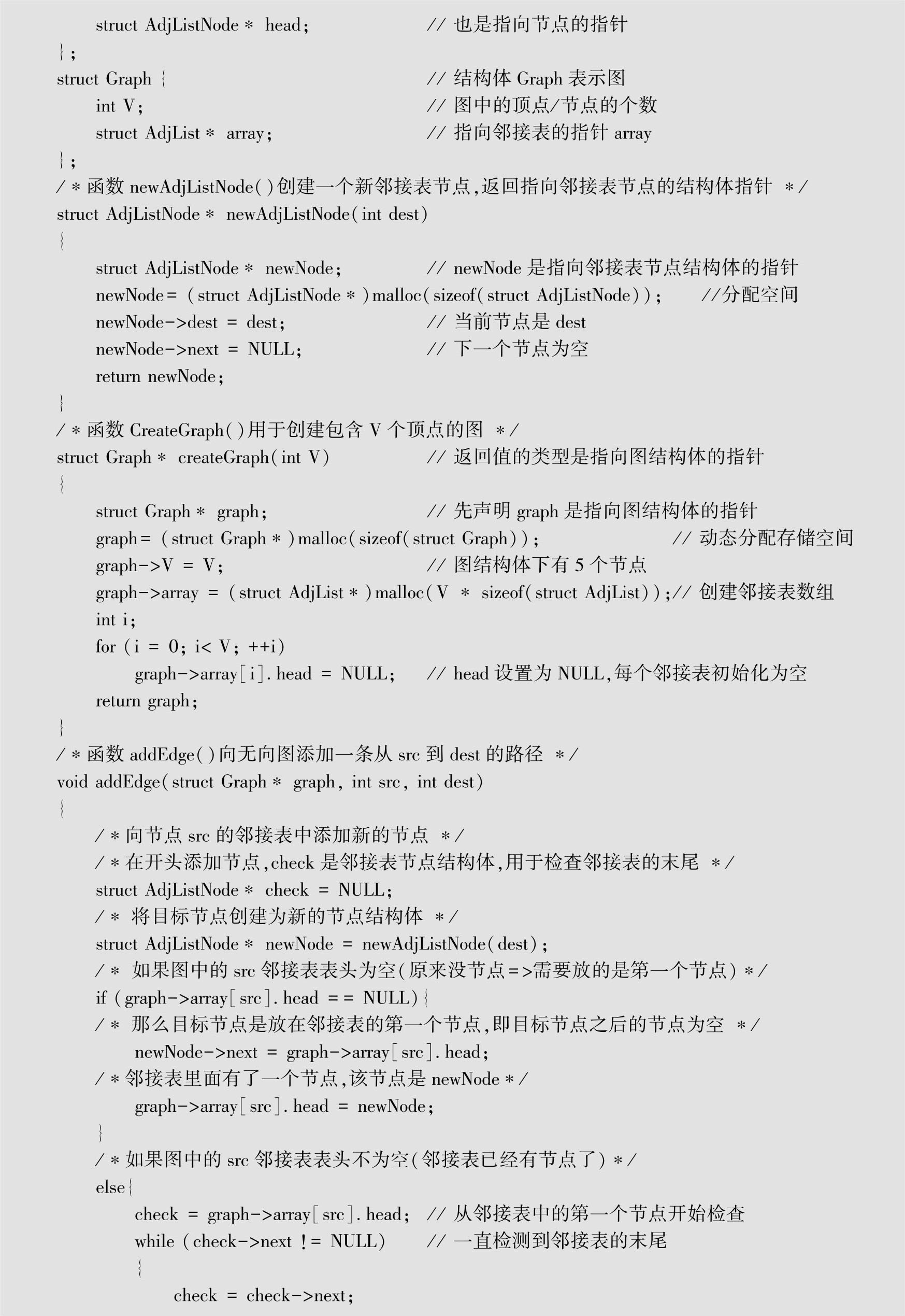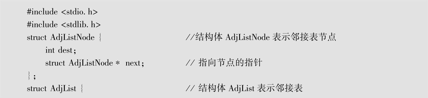 基于链表结构构建邻接表的C语言代码如代码清单3-6所示。