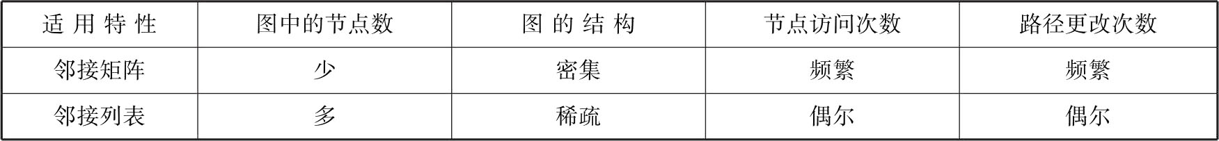 表3.1 选择邻接矩阵和邻接表的一些规则