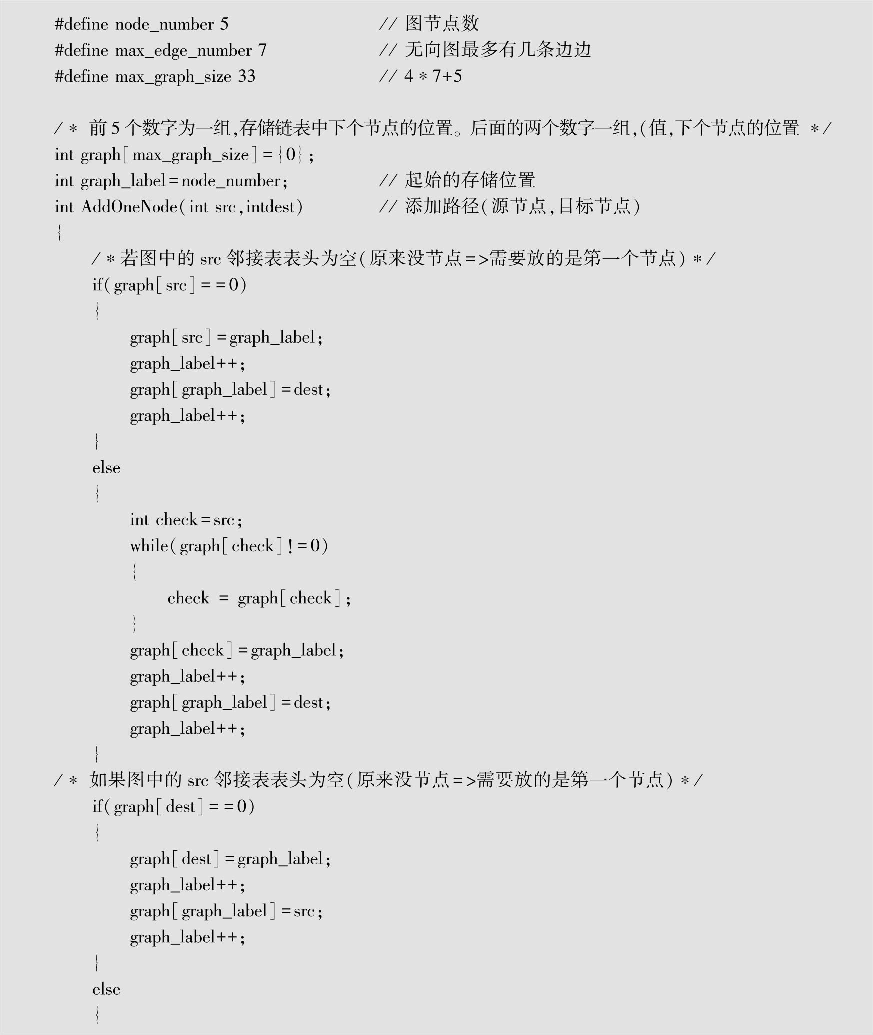 代码清单3-6 基于链表结构构建邻接表的C语言代码
