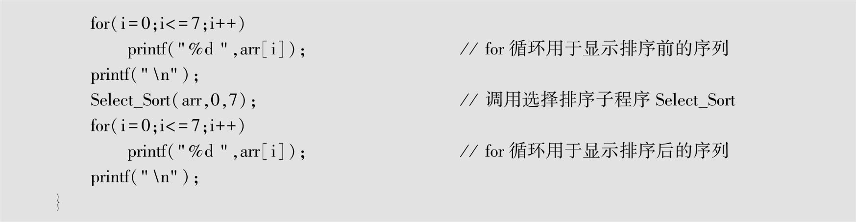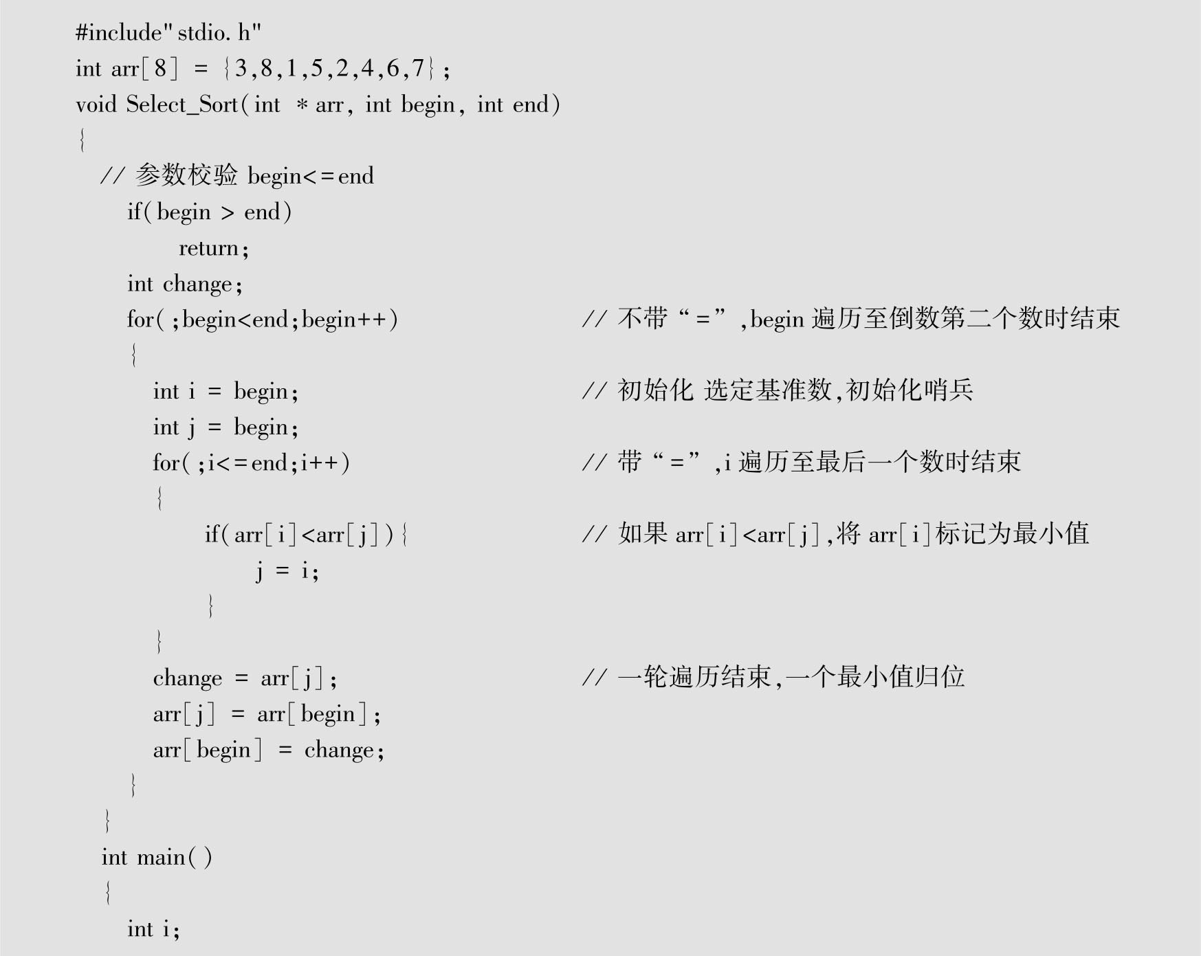 代码清单1-1 选择排序的C语言代码
