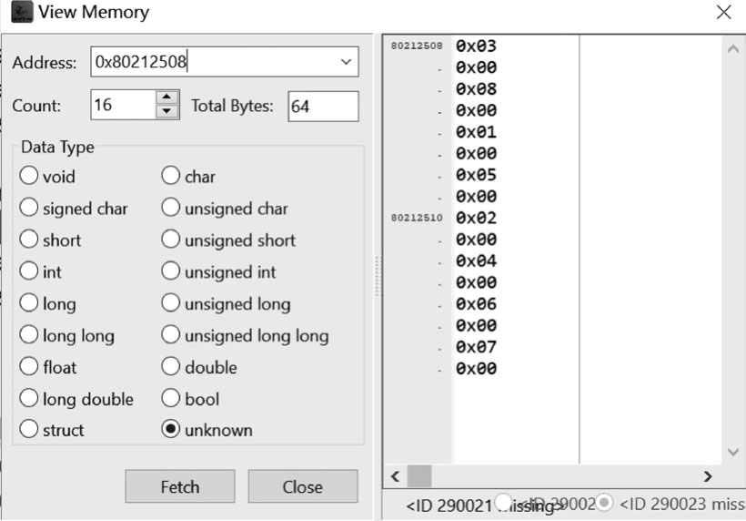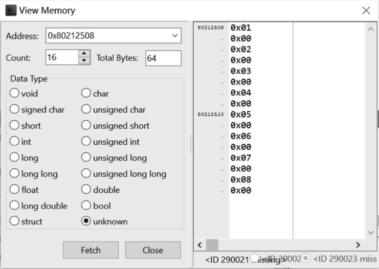 ,退出“View Memory”对话框。
