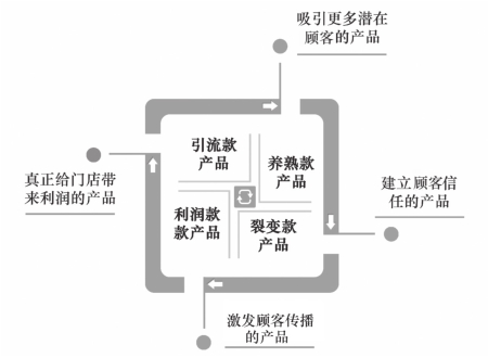 电商领域有一个拆分产品的矩阵思维。例如,将访客数量最多的产品作为网店的引流款产品,支付额最高的产品作为利润款产品,而下单数量最多的产品作为主打款产品。这种将产品拆分的思维模式也非常适合门店营销。