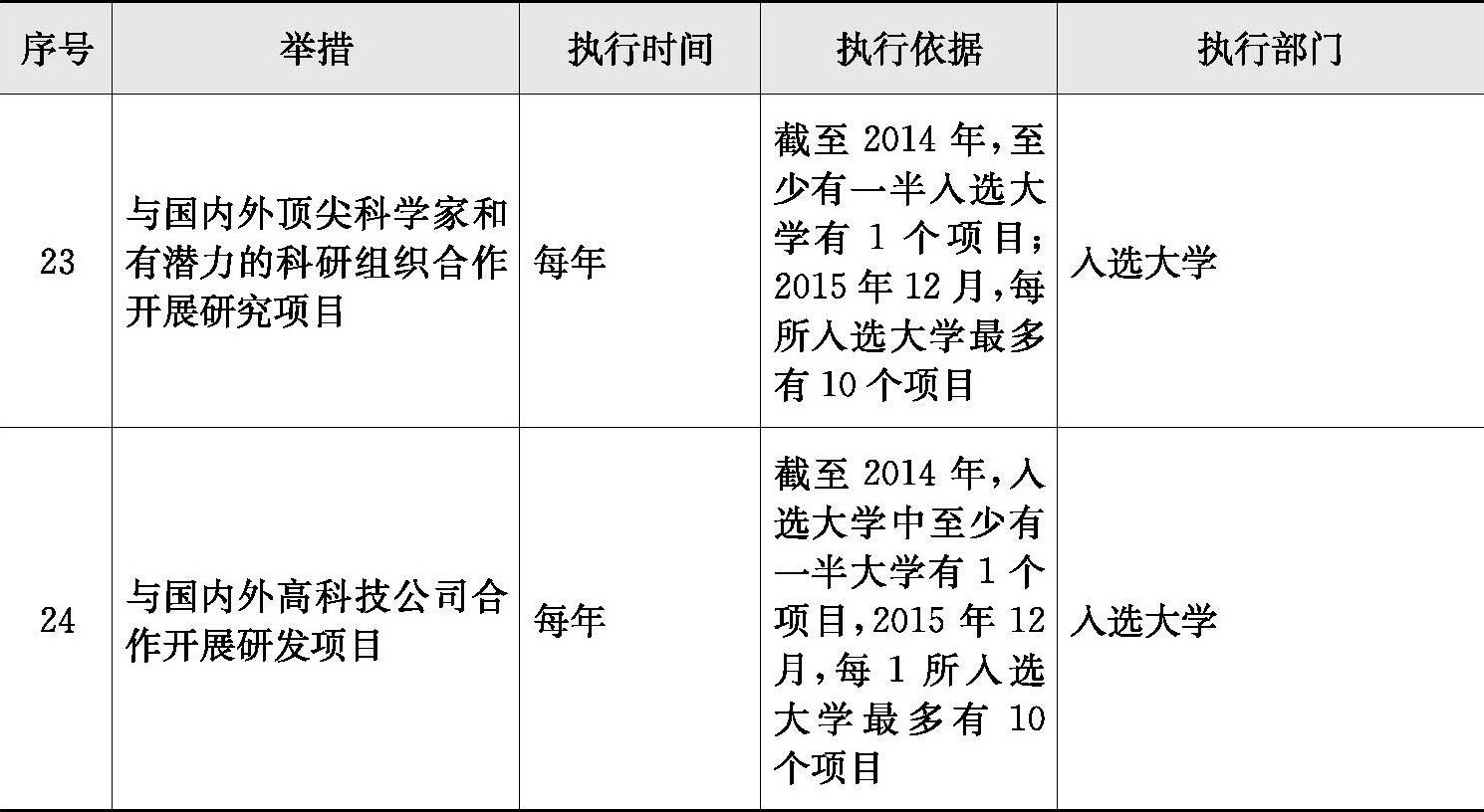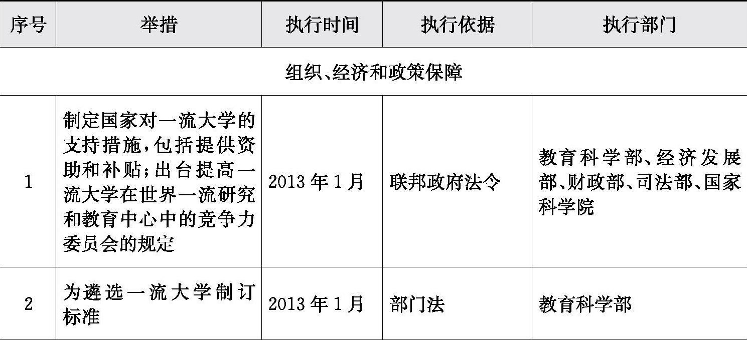 表1-7 《一流大学发展行动计划,旨在提高其在世界一流研究和教育中心中的竞争力》