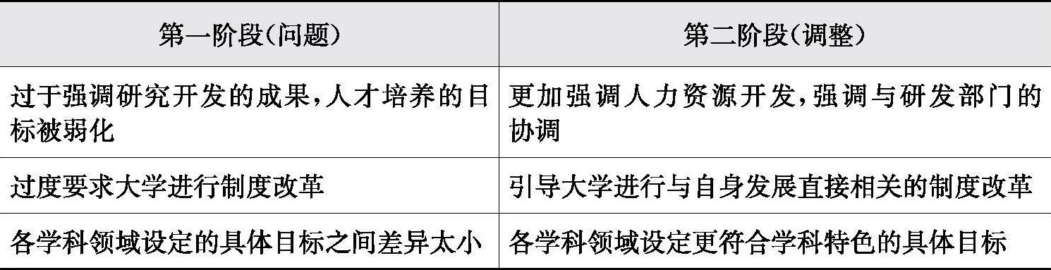 表1-5 BK21第二阶段针对第一阶段的调整