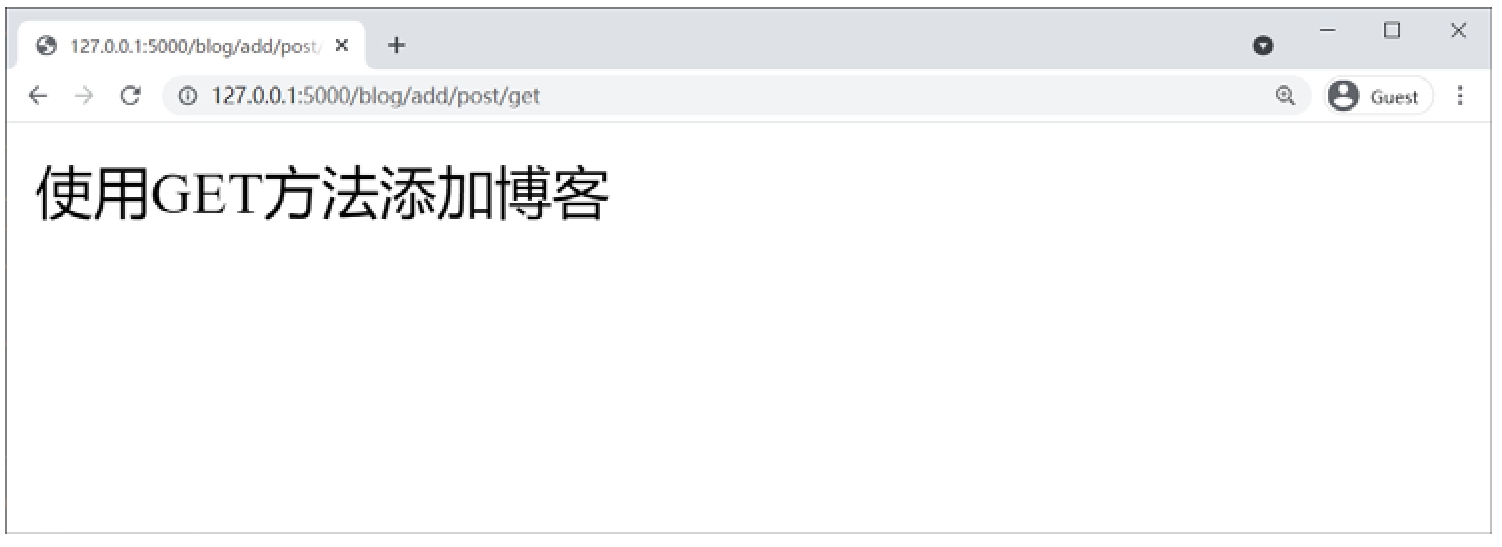 因为/blog/add/post/get同时支持GET和POST请求方法,所以在浏览器中访问/blog/add/post/get时也可以访问到页面,如图3-12所示。
