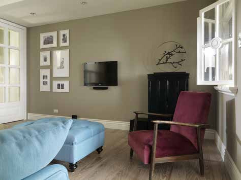 整栋建筑室内以大量的特殊色墙面来衬托材质与样式的对比,视觉在空间里不仅是水平向的流动,也可是垂直向的转移。古董家具与现代装潢产生一种时空交错的趣味,时间的变化,掩盖了老屋的沧桑,此刻,这栋老房子,又找到了时尚的韵味。