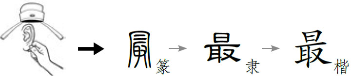 “最”字本义是指进攻并捉拿。原写作“㝡”,字形采用“冃”“取”会意。另外,古代考核政绩或军功时划分的等级,以上等为“最”,跟“殿”相对。现在,“最”也指首位,如“世界之最”。