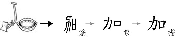 “加”的本义是指用呐喊声助力。字形采用“力”“口”会意。“力”指用力,“口”指喊声。现在,“加”也表示程度,相当于更加、愈加,如“加倍”,泛指程度比原来深得多。