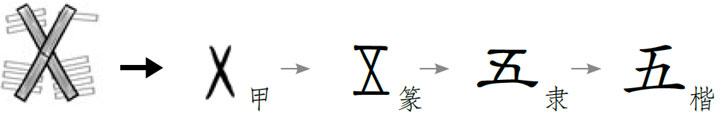 古人造字,通常采用直观的方式,如数字一、二、三,要写的数字是几,就画几条横杠来表示。但是如果这样继续下去,势必会导致后来的数字变得繁复不堪。因此,从“五”这个数字开始,就改变了书写的方式,通过将两个横杠相交叉,来代表数字五。