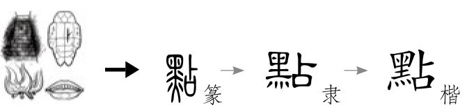 古人用带墨汁的毛笔笔尖在书页上标注圆粒状记号,以示断句或阅读心得。“点”字的本义是指小黑粒。繁体字为“點”,字形采用“黑”作形旁;“占”作声旁,是“沾”的省略,表示沾染。现在,“点”也指有代表性的局部、方面、部分,如“优点”等。
