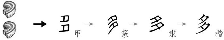 在最初的写法中,“多”字并不是由上下两个“夕”构成,而是由像两块并排摆放的肉的形状构成。两三个同样的事物放在一起就有众多的含义,类似的汉字还有“林”“森”“众”等。这个字还有推崇、赞许之义,如“多有气质”“多漂亮”。