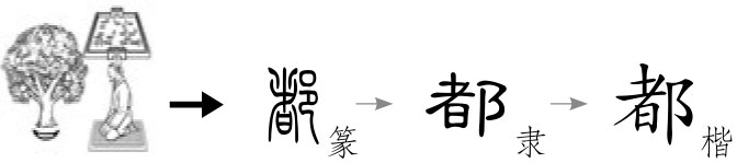 ”,字形采用“邑”作形旁,采用“者”作声旁。在古代,凡是城邑,有先君神主宗庙的叫作“都”,没有的叫作“邑”。现在,“都”字也指全部,读作dōu,如“都是”等。