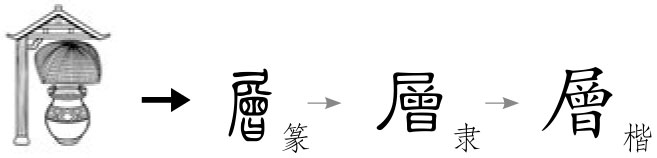 两层楼的房子。“层”字本义是指上下重叠的房屋,原写作“層”。字形采用“尸”作形旁,是“屋”的省略;采用“曾”作声旁,表示用来蒸热食物的竹制隔板。现在,“层”也指重叠事物的一部分,如“层次”。