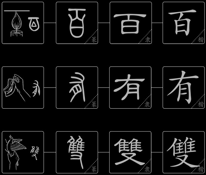 “百”字本义指代数字,即“十个十为一百”。该字是一个指事字,在甲骨文中,“百”字上边为一横画,下边是“白”字。这里,一横画为指事符号,也好与“白”区别开来。后来,“百”字引申为众多,如“百战不殆”,这里的“百”就不为确数,而是指多数。再如“百姓”,指的是广大的人民。