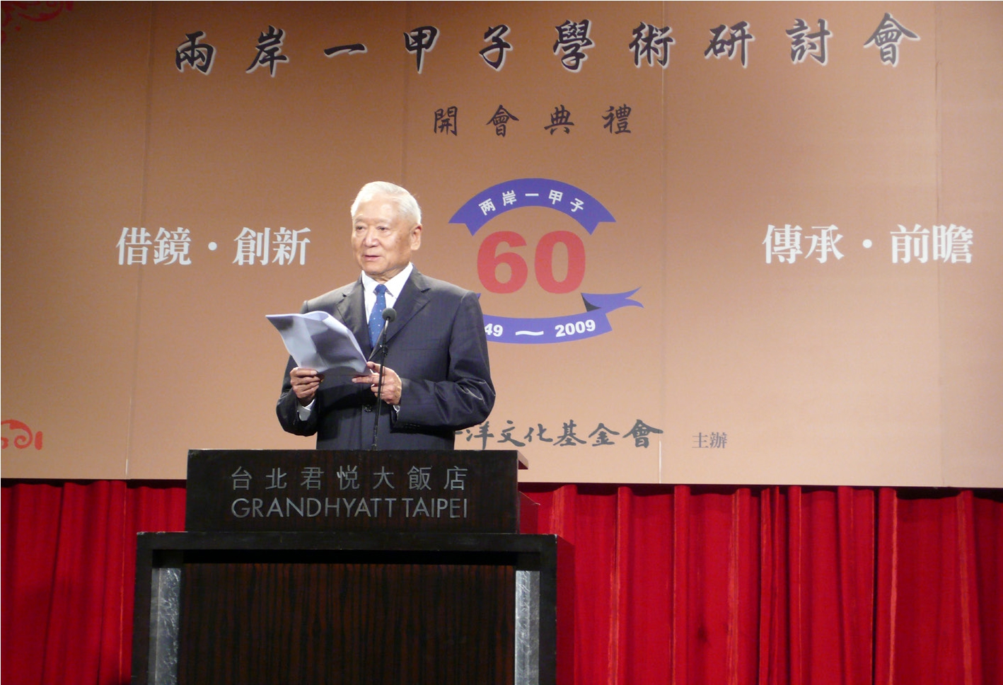 Giving the keynote speech at the 60-Year Cross-Straits Relations Seminar in Taiwan in 2009 as the head of the mainland delegation