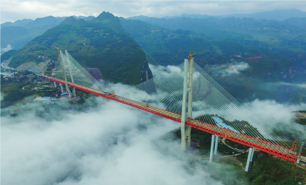 A part of the Hangzhou–Ruili Expressway on the border between the provinces of Guizhou and Yunnan, the Beipanjiang Bridge Duge was completed in 2016, with a vertical height of 565 meters from the bridge floor to the bottom of the valley, making it the highest bridge in the world.