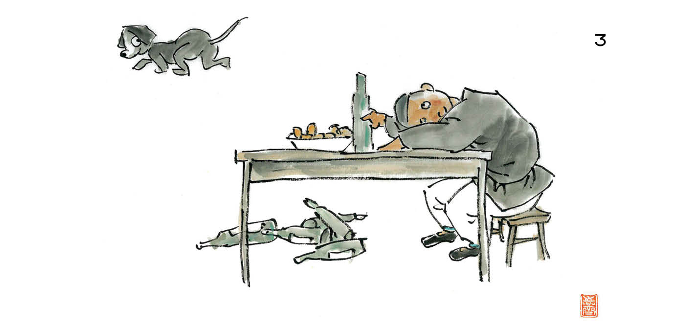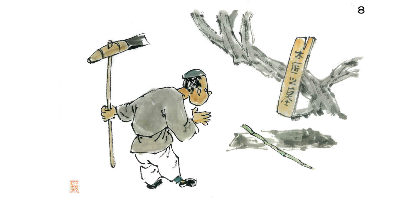 木匠心中也有些不忍,扔掉棍子,自己喝酒。喝醉了,趴在桌子上睡了。迷蒙中,看到狗费劲地爬起来,摇摇摆摆地向着门外走去。木匠说:狗杂种,走了就不要再回来了。从此这条狗就没有了。