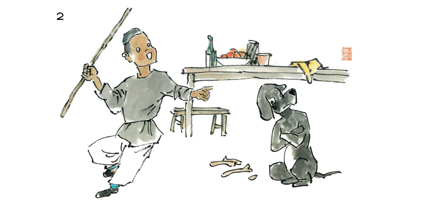 木匠心中也有些不忍,扔掉棍子,自己喝酒。喝醉了,趴在桌子上睡了。迷蒙中,看到狗费劲地爬起来,摇摇摆摆地向着门外走去。木匠说:狗杂种,走了就不要再回来了。从此这条狗就没有了。