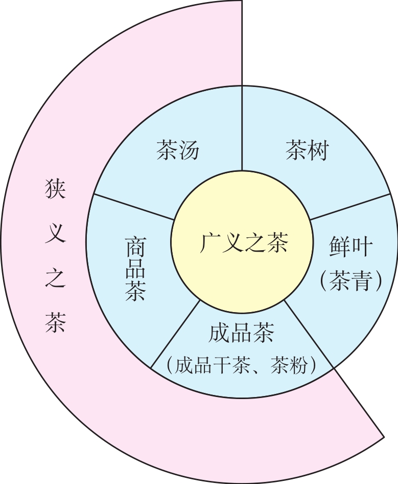 所以我们说到“茶”时,事实上包含了广义与狭义的解释,广义的茶包含了“茶树”“鲜叶”“成品干茶”“茶粉”与“茶汤”,其中的“成品干茶”与“茶粉”可以简称为“成品茶”。至于狭义的茶仅包含“成品茶”与“茶汤”。我们在市面上所称的“茶”或“茶叶”(如:“我们到茶行买茶。”“请帮我带些茶叶回来。”)都是指狭义的“成品茶”(图1.1.1a);我们在社交场合上所称的“茶”(如:“请到我家来喝茶。”“奉茶是制造和谐社会的有效途径。”)指的则是“茶汤”(图1.1.1b)。另外在“成品茶”上还可以衍生出“商品茶”(图1.1.1c)来,那是成品茶在市场行销时的商品性名称(图表1)。