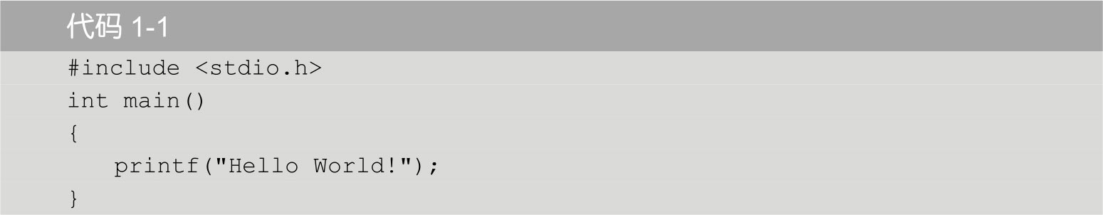 你会发现,printf()后面有一个分号,分号代表我们跟计算机说的一句话结束了,这是必须写的。其他几行末尾没有分号,是因为那些行的语句都是编写这个程序的准备动作,而不是真正的指令。还记得编译器吗?分号对编译器而言非常重要。编译器在“翻译”时是一句话一句话地处理的,分号是一句话结束的标识符,是需要让编译器识别的。